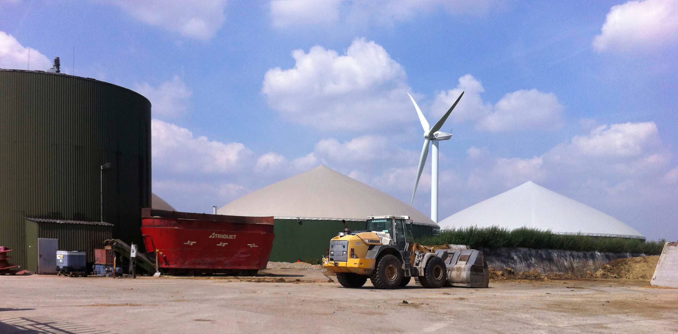 Biogas entsteht in Biogasanlagen durch den biologischen Abbau von Biomasse. Verwendet werden landwirtschaftliche Substrate wie Gülle und Stallmist oder Energiepflanzen (Mais, Roggen, Zuckerrüben, etc.), aber auch pflanzliche Nebenprodukte, wie z. B. Zuckerrübenschnitzel aus der Zuckerproduktion.