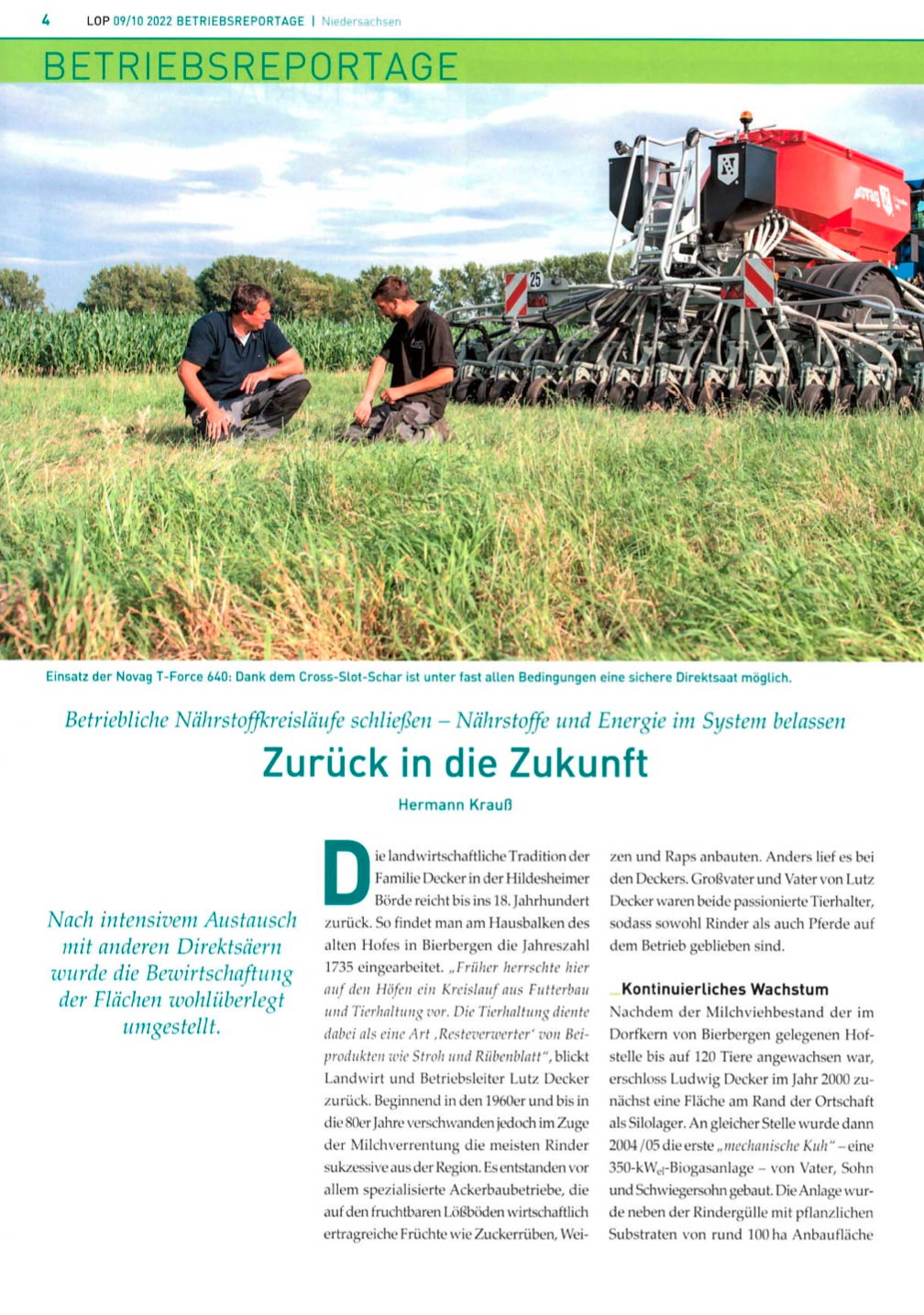 Oktober 2022 12seitige Reportage im "Landwirtschaft ohne Pflug" Magazin im Herbst 2022 Download PDF-Datei Reportage im "Landwirtschaft ohne Pflug" Magazin (4.32 MB)